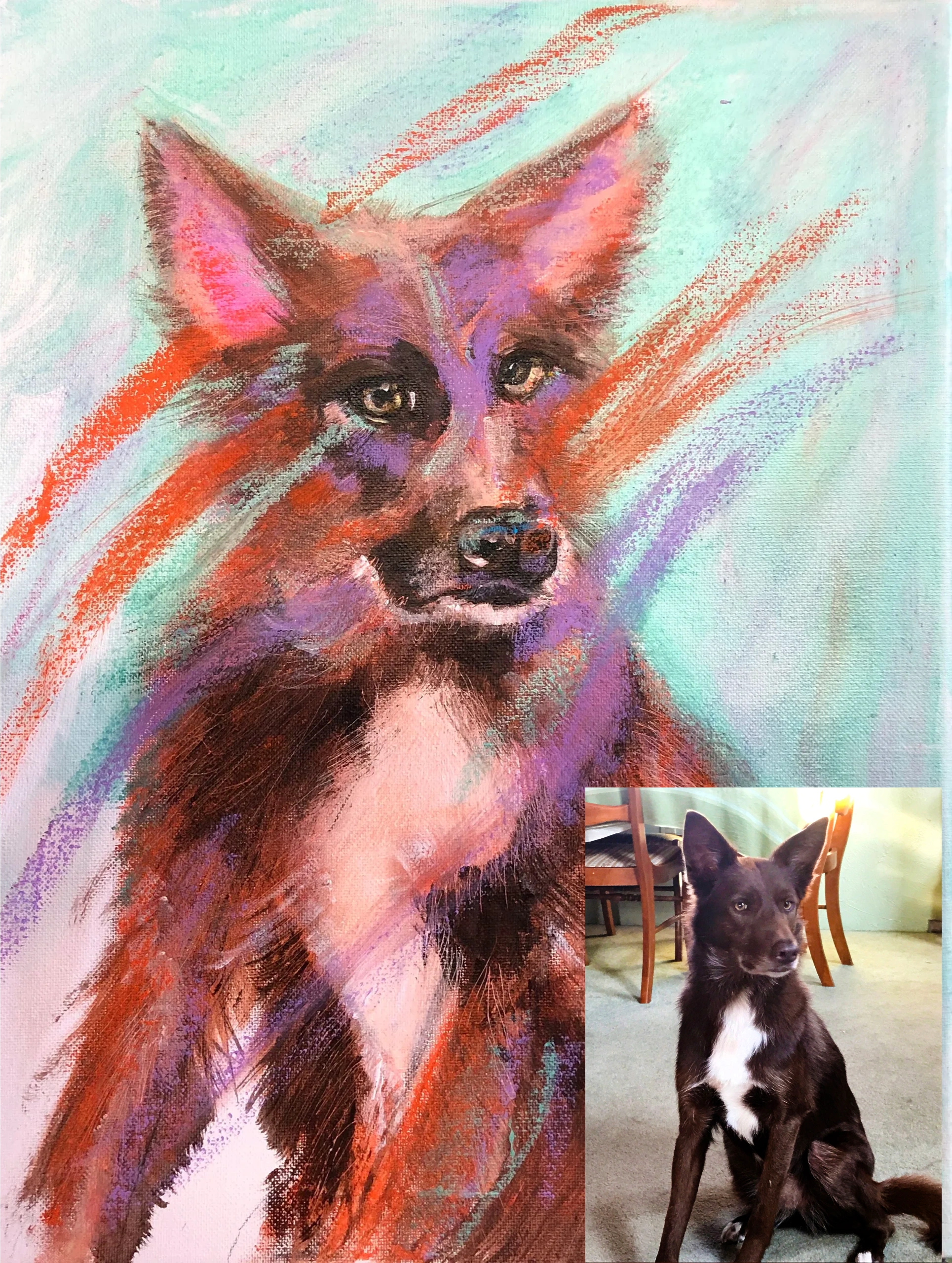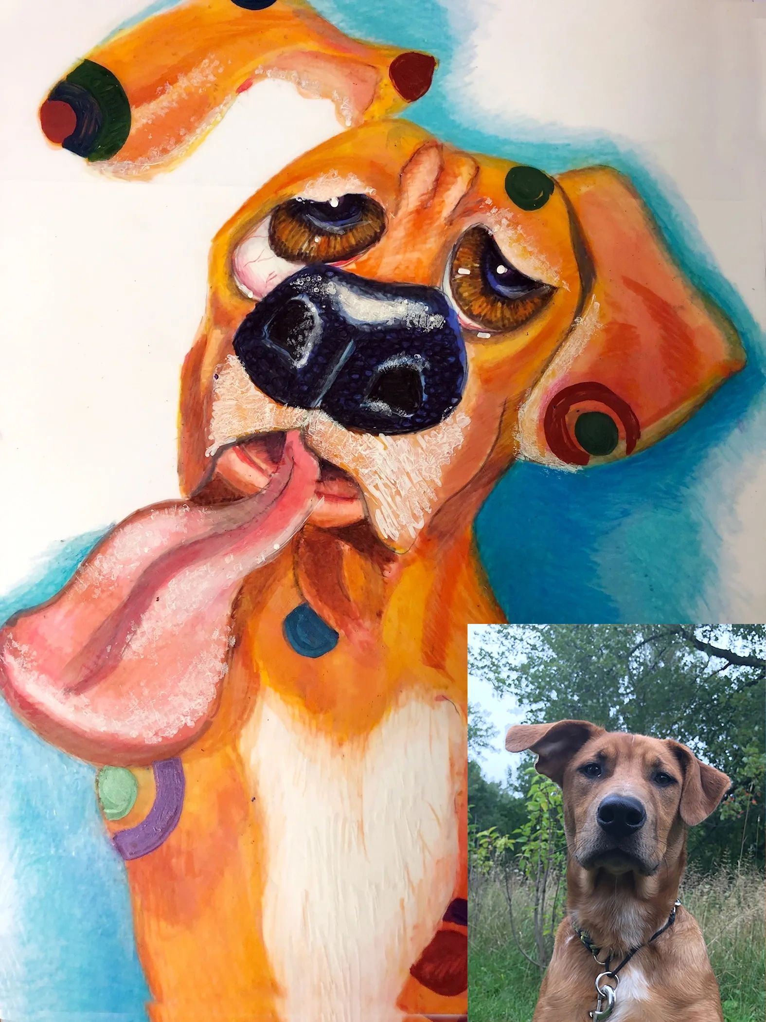 When I am doing a pet portrait I spend 10hr+ looking at that sweet face and for whatever reason I see things that go beyond the features. Pets especially have their personalities written all over thier faces. I give it free reign! Simply because it adds a another dimension and a fuller expression of themselves.